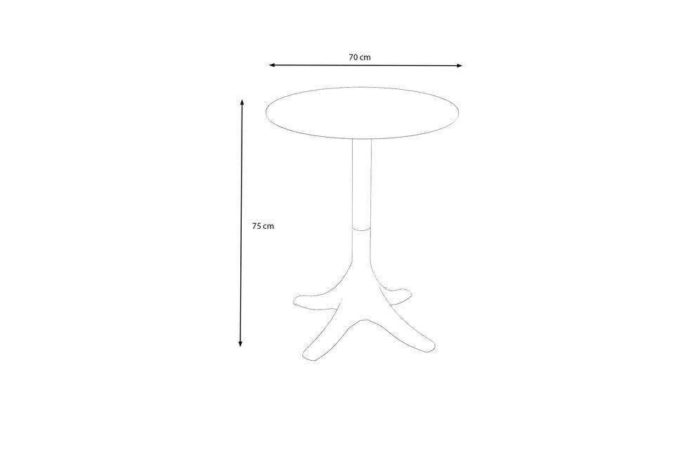 Dank seiner runden Form wirkt der Tisch besonders einladend und eignet sich sowohl für gesellige Momente zu zweit als auch für kleine Snacks, Getränke oder entspannte Kaffeepausen. Die gleichmäßig geformte Tischplatte sorgt für eine angenehme Verteilung der Stellfläche, während das stabile Untergestell für zuverlässigen Halt sorgt. Die Konstruktion besteht ebenfalls aus Kunststoff und ist so gestaltet, dass der Tisch auch auf unterschiedlichen Untergründen sicher steht.