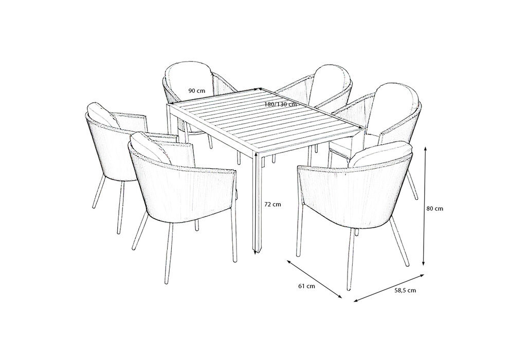 Die verwendeten Materialien wie Aluminium, Rope-Geflecht und Polyester sind bestens für den Einsatz im Freien geeignet, da sie witterungsbeständig und robust sind. Damit bleibt Ihre Essgruppe über viele Jahre hinweg ein zuverlässiger Begleiter im Garten. Die Kombination aus funktionalen Eigenschaften, eleganter Farbgebung und hoher Alltagstauglichkeit macht die VILLANA Tareo Essgruppe zu einem vielseitigen Ensemble, das sowohl in kleinen als auch großen Außenbereichen überzeugt.