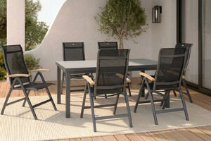 HARTMAN Alice Garten-Essgruppe, xerix, Alu/4x4 Textilen, Tisch 180/240x100cm, 6 Klappstühle