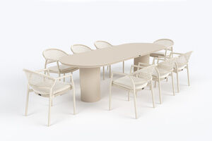 HARTMAN Shades of Colour Valencia/Taragona Garten-Essgruppe, sand/beige, Alu/Keramik/Rope-Geflecht, Tisch 280 x 100 cm, inkl. 8 Stapelsessel