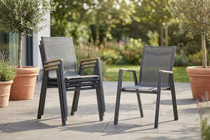HARTMAN 4er Set Aruba Stapelsessel, xerix/anthrazit, Alu/Textilene, mit Teak-Armlehnen
