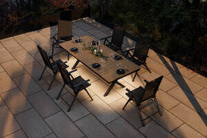 KETTLER BasicPlus Pro Garten-Essgruppe mit LED-Beleuchtung, anthrazit/natur, Alu/Holzimitat, 240 x 100 cm, 6 Klappstühle
