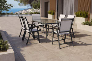 B-Ware: VILLANA Garten-Essgruppe mit 6 Klappstühlen, schwarz, Stahl/Textilene, Esstisch 150 x 90 cm