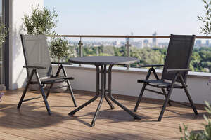 KETTLER BasicPlus Pro Balkon-Set, anthrazit, Aluminium/KETTALUX/Textilene, Tisch Ø 70 cm, 2 Klappstühle, schmutzabweisend