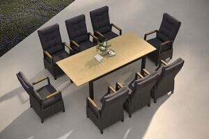 HARTMAN Nova Garten-Essgruppe mit 8 Sesseln, anthrazit/grau/natur, Alu/Polyrattan, Tisch 150/210 x 90 cm, verstellbare Rückenlehne mit Teak-Armlehnen, FSC®-zertifiziertes Produkt