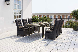 OUTFLEXX Nova Garten-Essgruppe, anthrazit matt/anthrazit, Aluminium/Polyrattan, Tisch 160/260 x 100 cm, 6 Dining-Sessel, FSC®-zertifiziertes Produkt