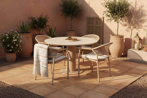 HARTMAN Shades of Colour Girona/Taragona Garten-Essgruppe, cappuccino/beige, Alu/Keramik/Rope-Geflecht/Polyester, Tisch Ø 120 cm, inkl. 4 Stapelsessel