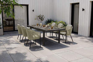 OUTFLEXX Tavio Garten-Essgruppe, anthrazit matt/grün, Alu/Rope-Geflecht, ausziehbare Tischplatte 180/240 x 100 cm, 6 Diningsessel