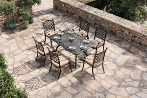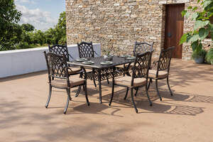 OUTFLEXX Cambridge Garten-Essgruppe mit 6 Stühlen, bronze/khaki/schwarz, Gussaluminium/Polyester, Tisch ca. 150 x 90 cm