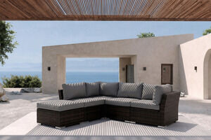 OUTFLEXX Gartenlounge, Polyrattan, braun marmoriert, inkl. Abdeckhaube, Ersatzbezug, wasserfeste Kissenbox