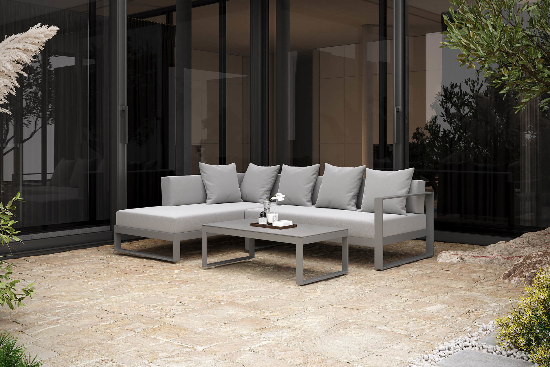 OUTFLEXX Willis Ecklounge, silber, Aluminium/Polyester, 5 Personen, inkl. Beistelltisch