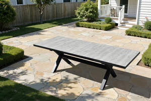 OUTLEXX Louvra Ausziehtisch, anthrazit/Holzoptik, Alu/Keramik, 200/260 x 100 cm, Tischplatte aus Keramikfliesen