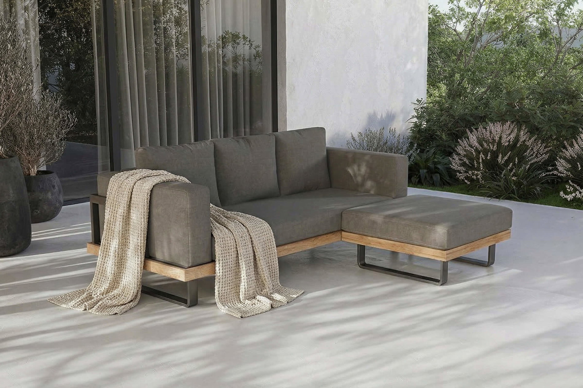 OUTFLEXX Gartenlounge für 3–4 Personen, Alu/Olefin/Akazie, gepolstert in grau, FSC®-zertifiziertes Produkt