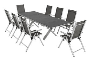 KETTLER Exklusivmodell BasicPlus 2026 Garten-Essgruppe, silber/anthrazit, Alu/Textilene, Spraystone-Tischplatte 180/280 x 100 cm, 8 Klappstühle