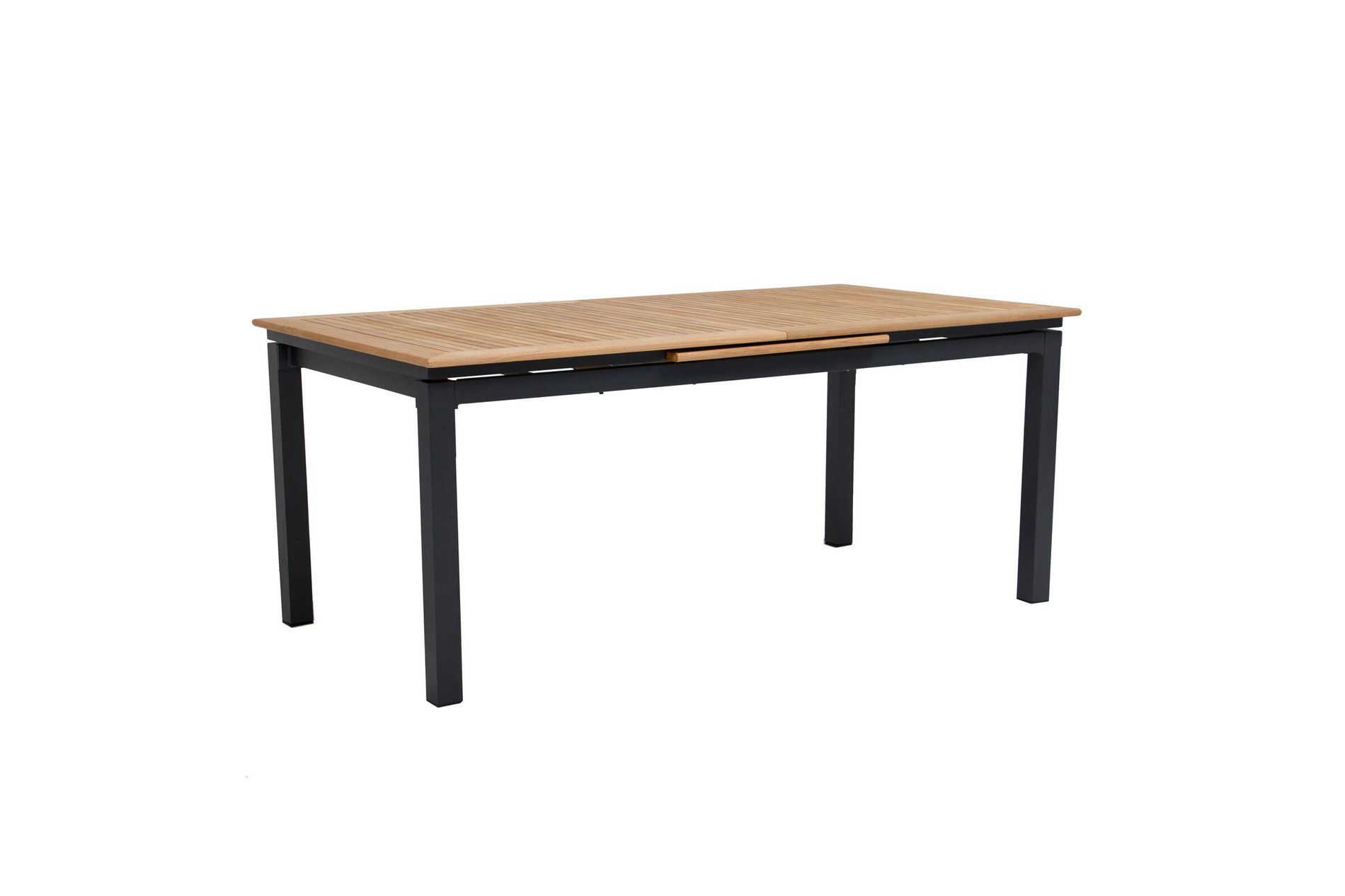 OUTFLEXX Premium Ausziehtisch, anthrazit matt, Alu/Teak, 180/240x100cm, automatischer Ausziehmechanismus