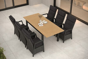OUTFLEXX Nova Garten-Essgruppe mit 6 Sesseln, anthrazit/grau, Alu/Polyrattan/Teak, 152/210 x 89 cm, verstellbare Rückenlehne