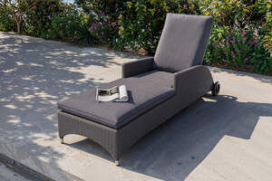 OUTFLEXX Vigo Rollliege, stahlgrau-meliert, Alu/Polyrattan, 198x68x96 cm, rollbar, inklusive Polster