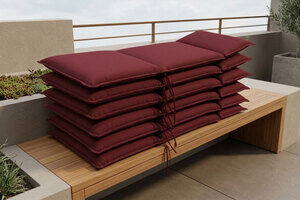 OUTFLEXX Green 6er-Set Sitzkissen für Hochlehner, bordeaux, recyceltes Polyester, hautsympathisch, mit Rückengurt und Bindekordeln