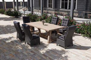 OUTFLEXX Nova Garten-Essgruppe mit 6 Sesseln, anthrazit/grau/natur, Alu/Polyrattan, 220 x 110 cm Tisch, verstellbare Rückenlehne mit Teak-Armlehnen, FSC®-zertifiziertes Produkt