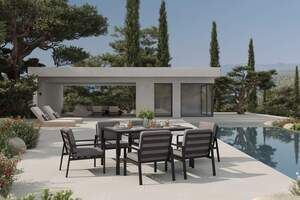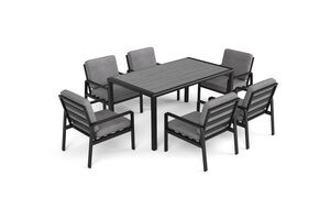 OUTFLEXX Taro Garten-Essgruppe mit 6 Sesseln, anthrazit/dunkelgrau, Aluminium/Holzimitat, Tisch 150 x 90 cm, pulverbeschichtet