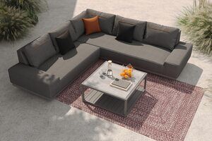 OUTFLEXX Beau Gartenlounge mit Outdoor-Teppich, grau/andorra-weiß, Alu/Polyester/PET-Garn, Teppich rechteckig 240 x 160 cm, inkl. Kaffeetisch