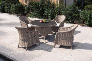 VILLANA Valento Garten-Essgruppe, natur/schwarz, Alu/Polyrattan, Tischplatte rund Ø120 cm, inkl. 4 Sessel