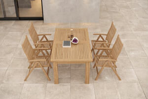 OUTFLEXX Garten-Essgruppe, natur, Akazie, Ausziehtisch 180/220/260 x 100 cm, 4 Klappstühle, FSC®-zertifiziertes Produkt