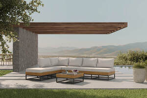 OUTFLEXX Taro Gartenlounge, anthrazit/beige, Alu/Holzoptik/Glas/Polyester, für 5 Personen, Quick-Dry-Schaum, pflegeleicht