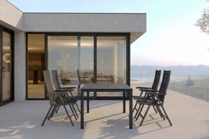 KETTLER BasicPlus Garten-Essgruppe, anthrazit, Alu/Spraystone/Textil, 160 x 95 cm, 4 Klappstühle
