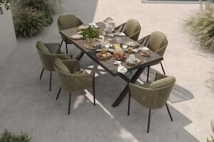 SIENA GARDEN Garten-Essgruppe, anthrazit/grün, Alu/Keramik/Rope-Geflecht, ausziehbarer Tisch 200/260 x 100 cm, 6 Diningsessel