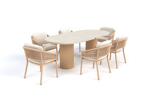 HARTMAN Shades of Colour Valencia/Altea Garten-Essgruppe, beige/cappuccino, Aluminium/Keramik/Rope/Polyester, Tisch 220 x 100 cm, oval, inkl. 6 Sessel