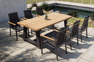 OUTFLEXX Evora Garten-Essgruppe, grau/anthrazit, Alu/Teak/Textilene, 200 x 100 cm, stapelbar, FSC®-zertifiziertes Produkt