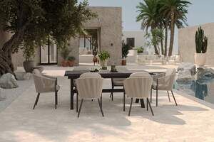 SIENA GARDEN Garten-Essgruppe, anthrazit/beige, Alu/Keramik/Rope-Geflecht, Tisch 200/265 x 100 cm, 6 Diningsessel
