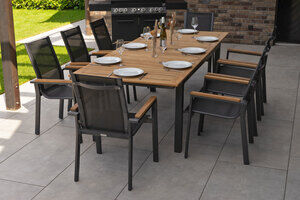 OUTFLEXX Garten-Essgruppe, anthrazit matt, Alu/Textilene, Tisch 180/240 x 100 cm, 8 Stapelsessel