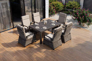 OUTFLEXX Premium Garten-Essgruppe, anthrazit matt/grau, Aluminium und Polyrattan, Tisch 160/260 x 100 cm, 6 Dining-Sessel