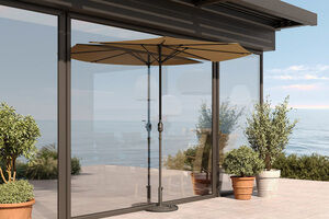 OUTFLEXX Cambridge Halbschirm-Set, khaki/schwarz, Alu/Stahl/Polyester/Beton, Ø 270 cm, UV50+, mit Kurbel & halbrundem Schirmständer, wetterfest