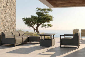 OUTFLEXX Gartenlounge für 4-6 Personen, anthrazit, Alu/Polyester, höhenverstellbarer Tisch