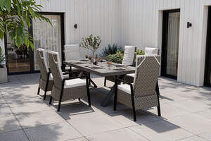 HARTMAN Xanadu Garten-Essgruppe, anthrazit/grau, Alu/Polyrattan, Tischplatte ausziehbar 220/280 x 100 cm, pulverbeschichtet, inkl. 6 Sessel