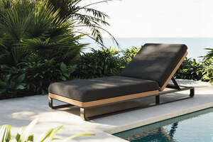 PLOSS Solera Gartenliege, anthrazit/schwarz, Alu/Polyester/Schaumstoff, mit Holzdekor, 200 x 72 cm, 6-fach verstellbar