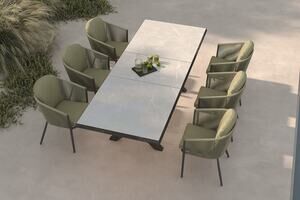 OUTFLEXX Tavio Garten-Essgruppe, schwarz/grün, Alu/Keramik/Rope-Geflecht, ausziehbare Tischplatte 200/260 x 100 cm, 6 Diningsessel