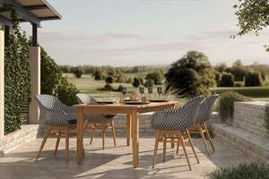OUTFLEXX Bali Garten-Essgruppe mit 4 Dining Sesseln, schwarz/weiß/natur, Akazie/Polyrattan, Tisch 180 x 90 cm, FSC®-zertifiziert