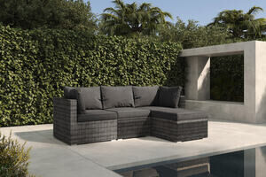 B-Ware: OUTFLEXX Loungegruppe, grau, Polyrattan, 4 Personen, verstellbare Sitzflächen, wasserfeste Kissenbox