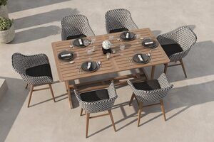 OUTFLEXX Bali Garten-Essgruppe mit 6 Dining Sesseln, schwarz/weiß/natur, Akazie/Polyrattan, 150/200 x 90 cm, FSC®-zertifiziertes Produkt