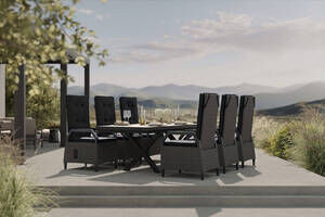 OUTFLEXX Serro Garten-Essgruppe, schwarz/grau, Aluminium/Polyrattan/Steinimitat, 200/260 x 100 cm, ausziehbar, 6 Diningsessel