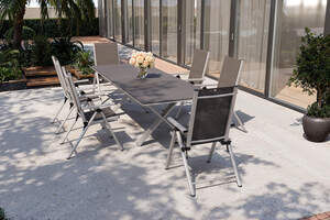 KETTLER BasicPlus Pro Garten-Essgruppe, silber/anthrazit, Alu/Textilene/Spraystone, 180/280 x 100 cm, 6 Klappstühle