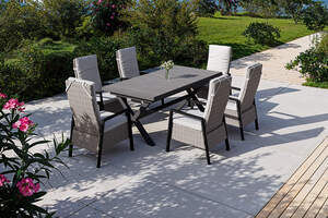 SIENA GARDEN Garten-Essgruppe, anthrazit/natur-grau, Alu/Keramik/Polyrattan, ausziehbare Tischplatte 200/260 x 100 cm, 6 Diningsessel
