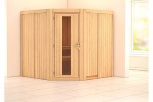 KARIBU Systemsauna Jarin, Fichtenholz 68mm, Eckeinstieg, ca. 3,4m²
