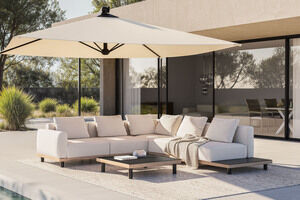 PLOSS Lunare M Gartenlounge, cashmere sand/anthrazit, Alu/Polyester/Sinterstein, 290 x 200 cm, Holzdekor, Quick Dry Foam