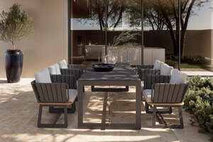 PLOSS Aurora Garten-Essgruppe mit 6 Sesseln, anthrazit/pale silver, Alu/Polyester/Rope, 200 x 100 cm, Steindekor, inkl. Polster