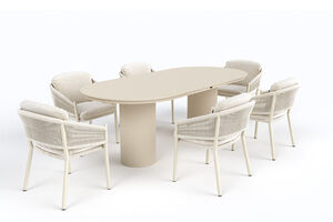 HARTMAN Shades of Colour Valencia/Altea Garten-Essgruppe, sand/beige, Alu/Keramik/Polyester/Rope-Geflecht, Tisch 220 x 100 cm, inkl. 6 Sessel